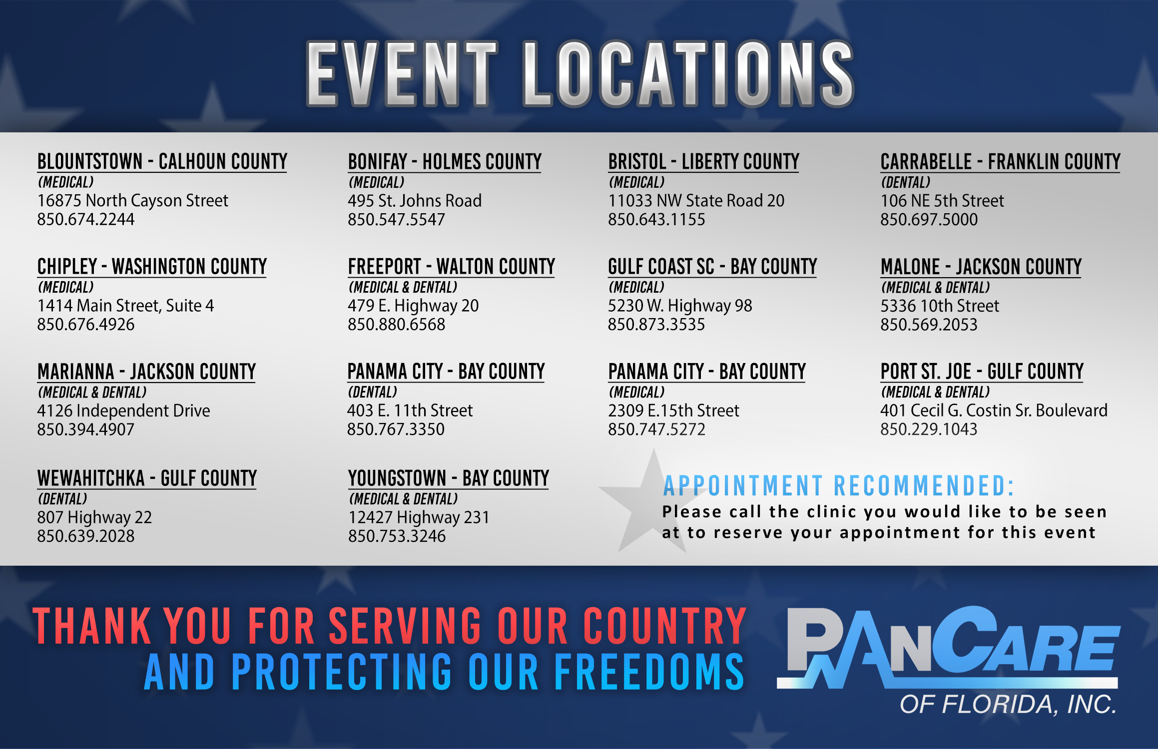 PanCare will host our annual STAND UP FOR VETERANS EVENT, taking place across all PanCare dental and medical clinics on Thursday, November 9, 2023. This initiative is to express our deep gratitude to the courageous men and women who have … Continue reading